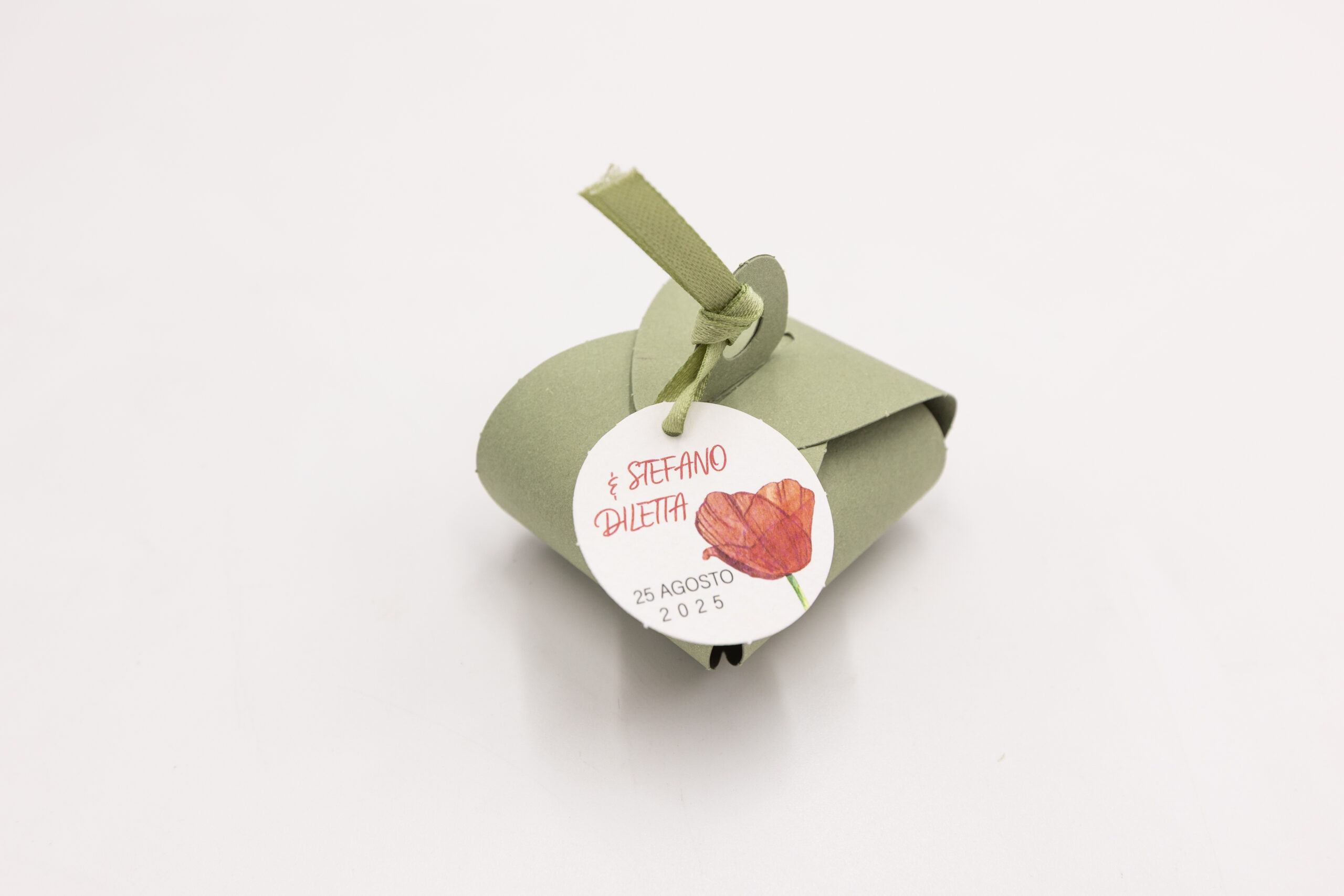 Scatolina petalo salvia con tag e nastro