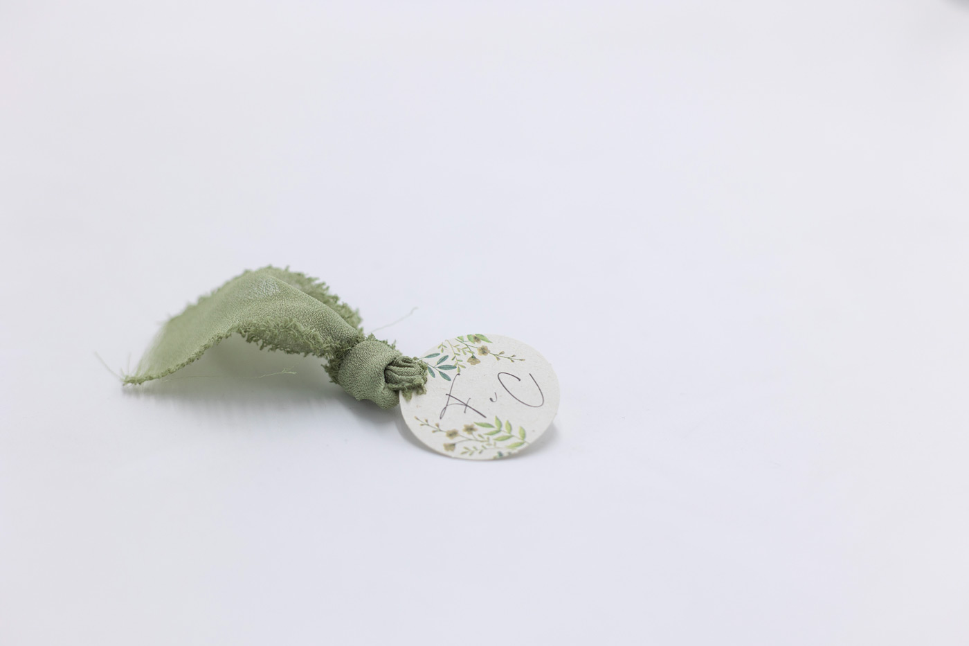 Germogli scatolina borsina verde salvia con tag e fiocco