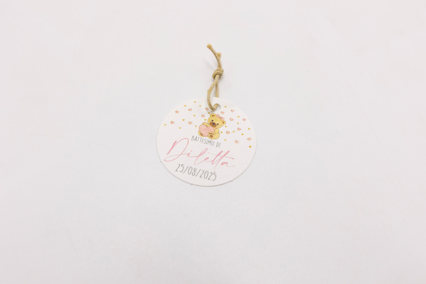 Tag rotondo con fiocco Orsetto Rosa