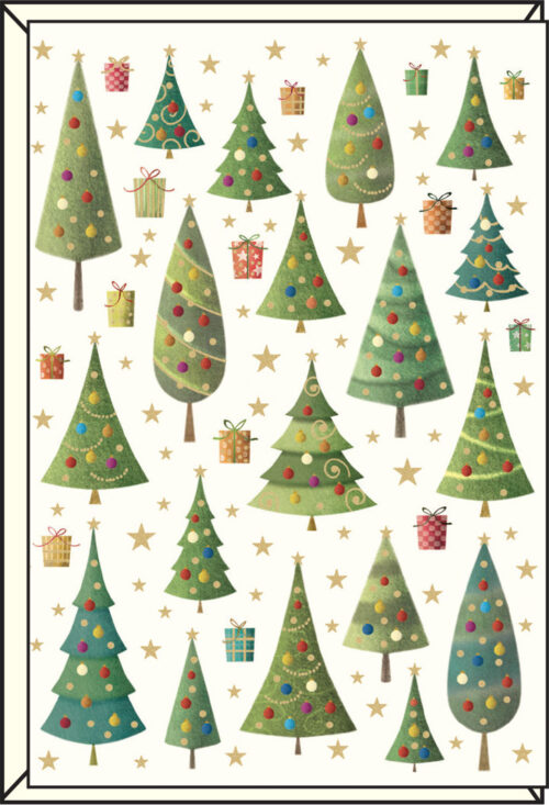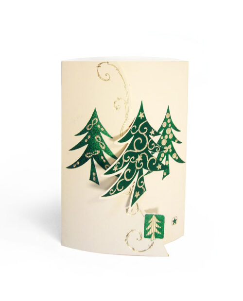 Biglietto di Natale Alberi Verde/Oro
