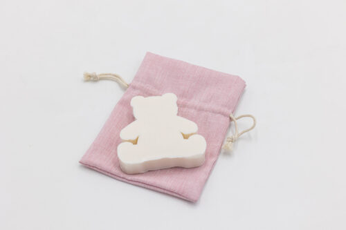 Sacchetto cotone celeste con sapone orsetto